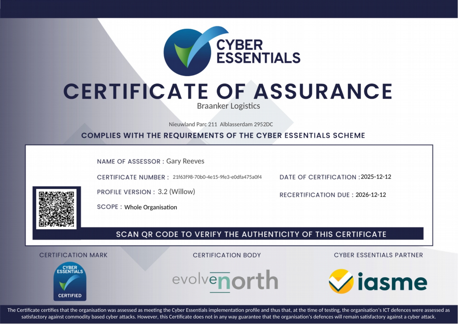 Braanker Logistics has obtained the Cyber Essentials Certificate once again. This underscores our focus on cybersecurity, continuity of service to customers, and data protection.